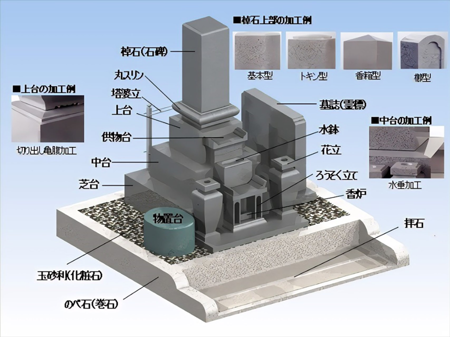 ※花立・水鉢・香炉・芝台・拝石は、石塔本体の料金に含まれます。